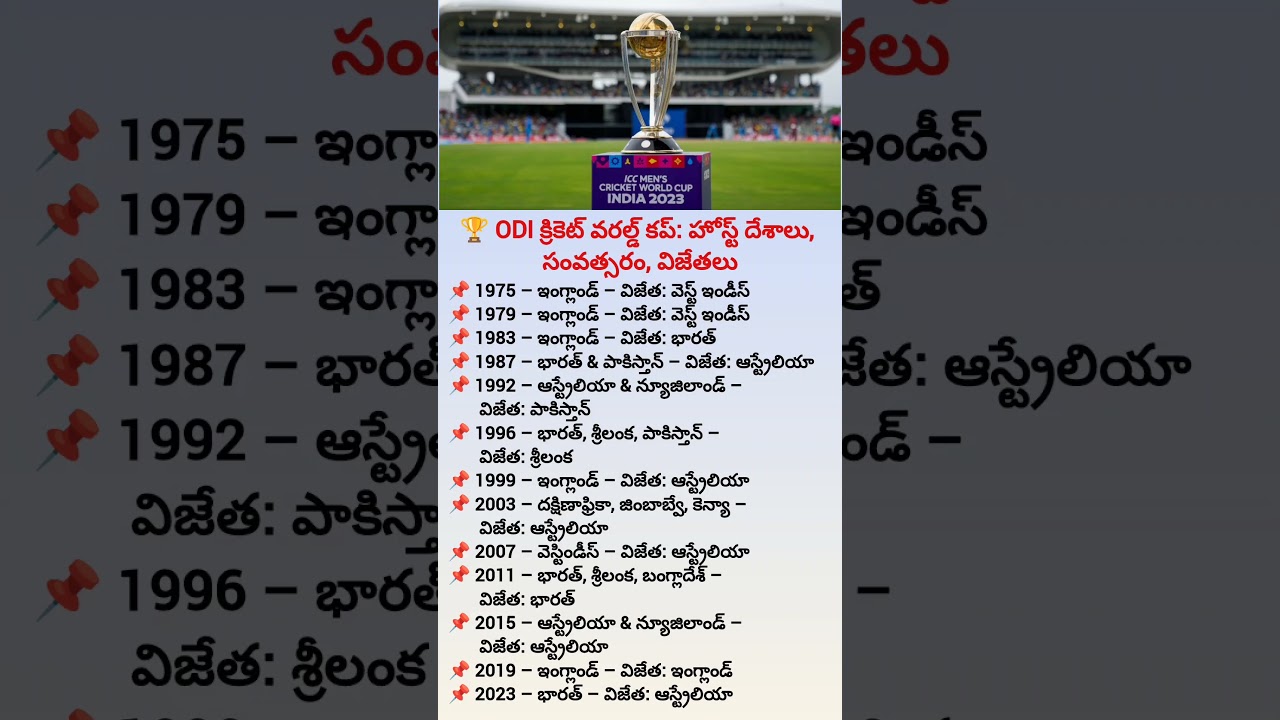 Write an article about 🏆ODI క్రికెట్ వరల్డ్ కప్:హోస్ట్ దేశాలు,సంవత్సరం,విజేతలు #business #cricket #trending #shorts #kohli in English